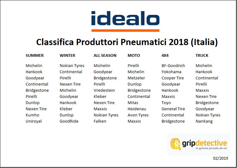 Per quanto riguarda i marchi, notiamo una decisa preferenza per i brand premium, come Michelin, Pirelli, Continental e Nokian.