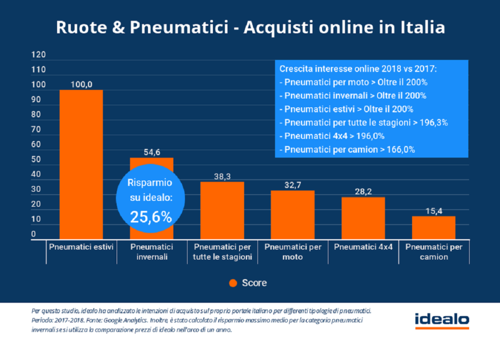 In parte siamo rimasti sorpresi, ma in effetti nel 2017 avevamo già registrato un comportamento analogo in Francia, dove l’interesse per le gomme si era spostato in maniera significativa dall’offline all’online.