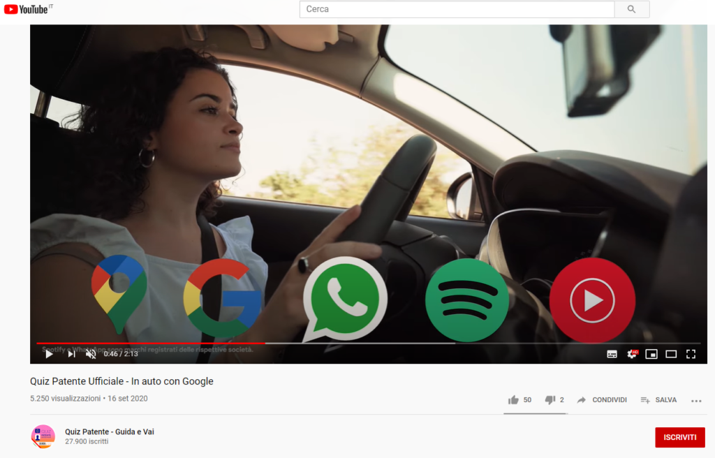 Il progetto “In auto con Google” sarà anche veicolato sull’app mobile Quiz Patente Ufficiale di Guida e Vai. L’app che permette agli utenti di studiare ed esercitarsi con i quiz ministeriali di tutte le patenti è, infatti, oggi tra le più scaricate d’Italia del settore Educational. Stiamo parlando di numeri importanti: più di 5 milioni di download e 120.000 utenti unici giornalieri.