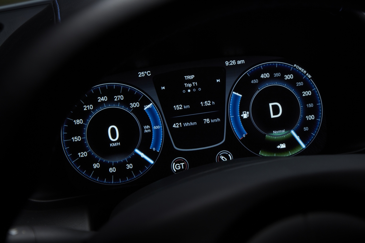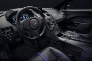 Un sottopavimento riprogettato ottimizza il flusso d’aria dallo splitter anteriore fino al nuovo diffusore posteriore più grande di Rapide E, una caratteristica che ora è interamente dedicata all’aerodinamica grazie alla rimozione del sistema di scarico necessario in precedenza. Il modello di ruote aerodinamiche forgiato in alluminio – realizzate con pneumatici Pirelli P-Zero a bassa resistenza al rotolamento su misura – sono state anche ridisegnate per offrire maggiore efficienza, senza compromettere la capacità di raffreddamento dei freni. La somma di questi cambiamenti dà al pacchetto aerodinamico di Rapide E un miglioramento dell’8% rispetto al precedente modello di combustione interna. Dentro e fuori, Rapide E è equipaggiata con i materiali e la tecnologia che si addicono al primo modello EV della marca. I display analogici sono ormai un ricordo del passato. Un display digitale da 10 “ora è al loro posto, fornendo tutte le informazioni chiave al conducente mentre è in movimento, incluso lo stato di carica della batteria, i livelli di potenza del motore corrente, le prestazioni rigenerative e un calcolatore in tempo reale del consumo energetico. Le strisce di fibra di carbonio sono state distribuite in tutto, aiutando a consegnare i severi obiettivi di peso stabiliti dal team di ingegneri di Aston Martin fin dall’inizio.
