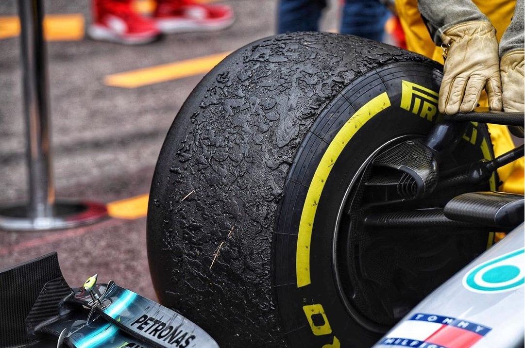 La foto delle gomme di Hamilton a fine GP di Montecarlo ha fatto il giro del mondo. A causa dei detriti lasciati in pista da Charles Leclerc dopo un contatto con Hulkenberg, al giro 11 è entrata la safety car e tutti i piloti di testa si sono precipitati ai box per effettuare il cambio gomme. Hamilton ha scelto pneumatici medium, con cui ha percorso i restanti 67 giri, il numero di giri più alto percorso da questa mescola domenica, insieme a Ricciardo e a Magnussen, che hanno utilizzato la stessa strategia. Il ritmo del pilota inglese era ben lontano da quello più veloce, ma gli ha permesso di arrivare in fondo senza dover fare un ulteriore sosta, che avrebbe certamente compromesso la vittoria.