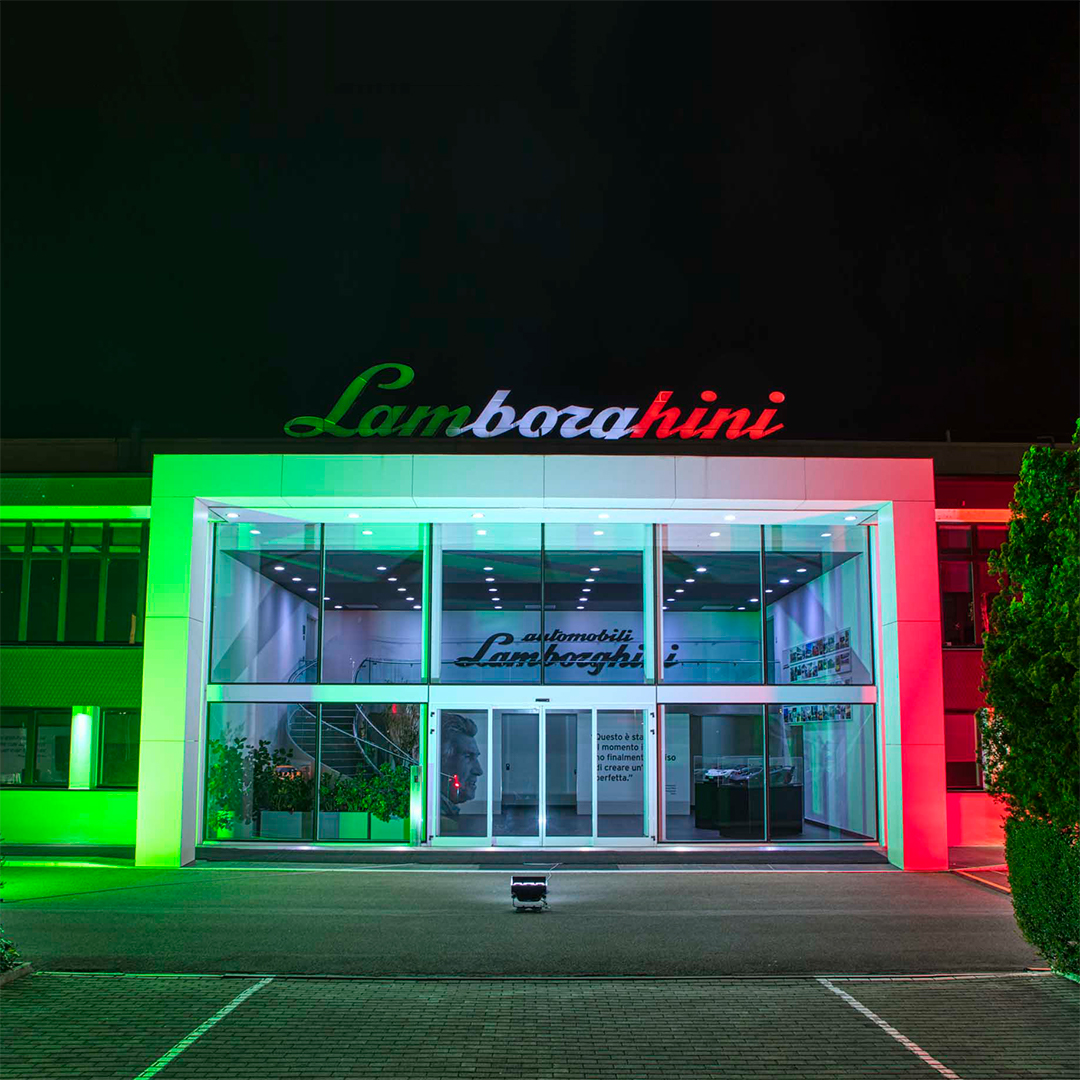 In segno di unità e sostegno all’intera Nazione, che sta affrontando l’emergenza Coronavirus, Lamborghini illumina ogni sera gli edifici dello storico stabilimento di Sant’Agata Bolognese con il tricolore.
