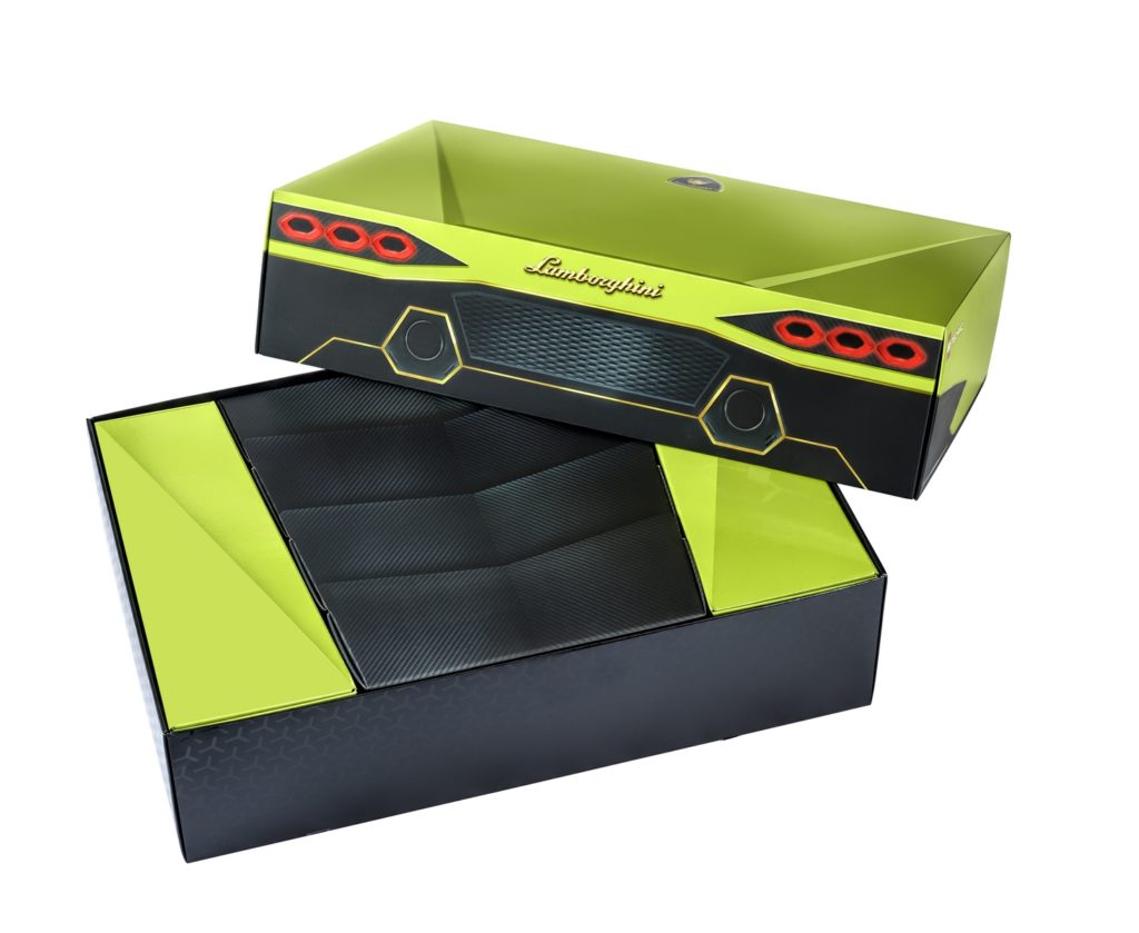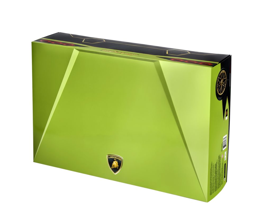 In vero stile Lamborghini, il modello inoltre vanta portiere a forbice che si aprono in modo tale da rivelare la riproduzione perfetta dell’abitacolo. Sono stati ricreati interni lussuosi e un cambio a 8 marce completamente funzionante, azionato da una leva del cambio movibile.