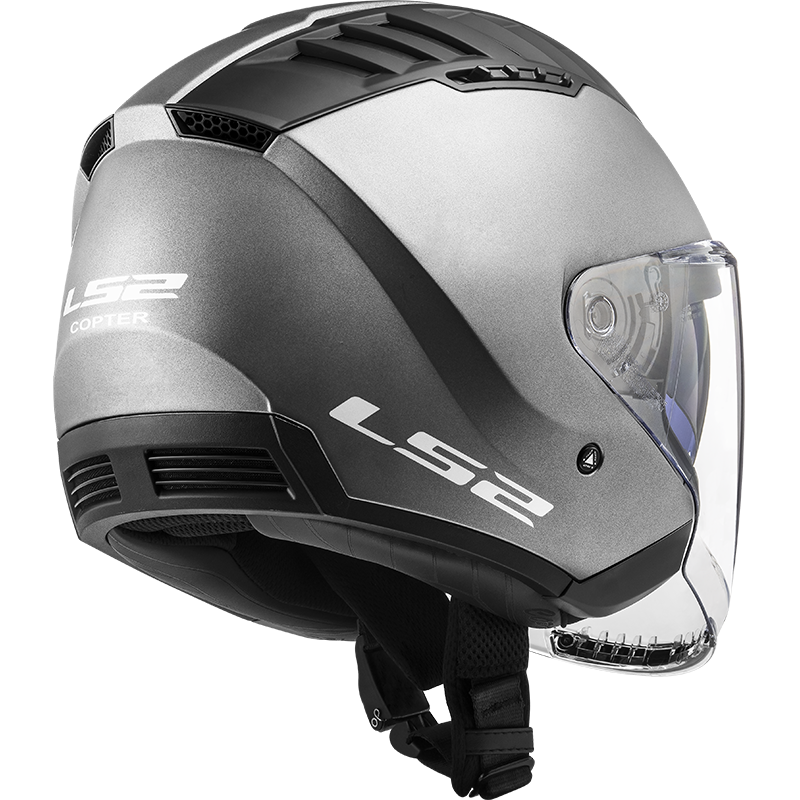 Il casco OF600 Copter è l’ultima creatura LS2. Per chi utilizza la moto o lo scooter in città, il nuovo jet dell’azienda spagnola è un casco molto leggero (1200 grammi di peso) con doppia visiera realizzato in policarbonato. Stabile e ben bilanciato anche a velocità prossime ai limiti, si caratterizza per la visiera ampia che protegge dall’aria, dagli insetti e da eventuali piccoli detriti e da una visiera solare per proteggere gli occhi dai raggi UV.