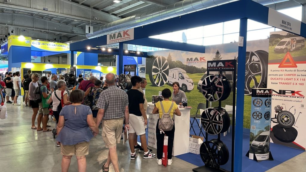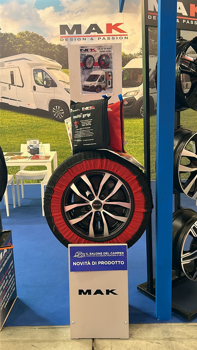 Anche quest’anno MAK ha partecipato al Salone del Camper 2023 di Parma, appena concluso, con uno stand in cui ha mostrato ruote, kit ruota di scorta, calze da neve e catene.