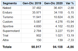 Nella nota diffusa nel pomeriggio di ieri da ANCMA, Magri ha sottolineato che, “sebbene permangano molte incognite sul 2021, in un anno molto difficile come quello appena trascorso, il mercato moto ha subito meno di altri le conseguenze della pandemia, che è stata in parte causa dell’interesse che gli italiani hanno riservato alle due ruote. Una tendenza positiva che abbiamo riscontrato in modo universale, sia quindi per quanto riguarda i segmenti più strettamente legati alla mobilità individuale urbana, come ciclomotori e scooter, che quelli tradizionalmente riconducibili alla passione e agli spostamenti di più ampio raggio come le moto”.