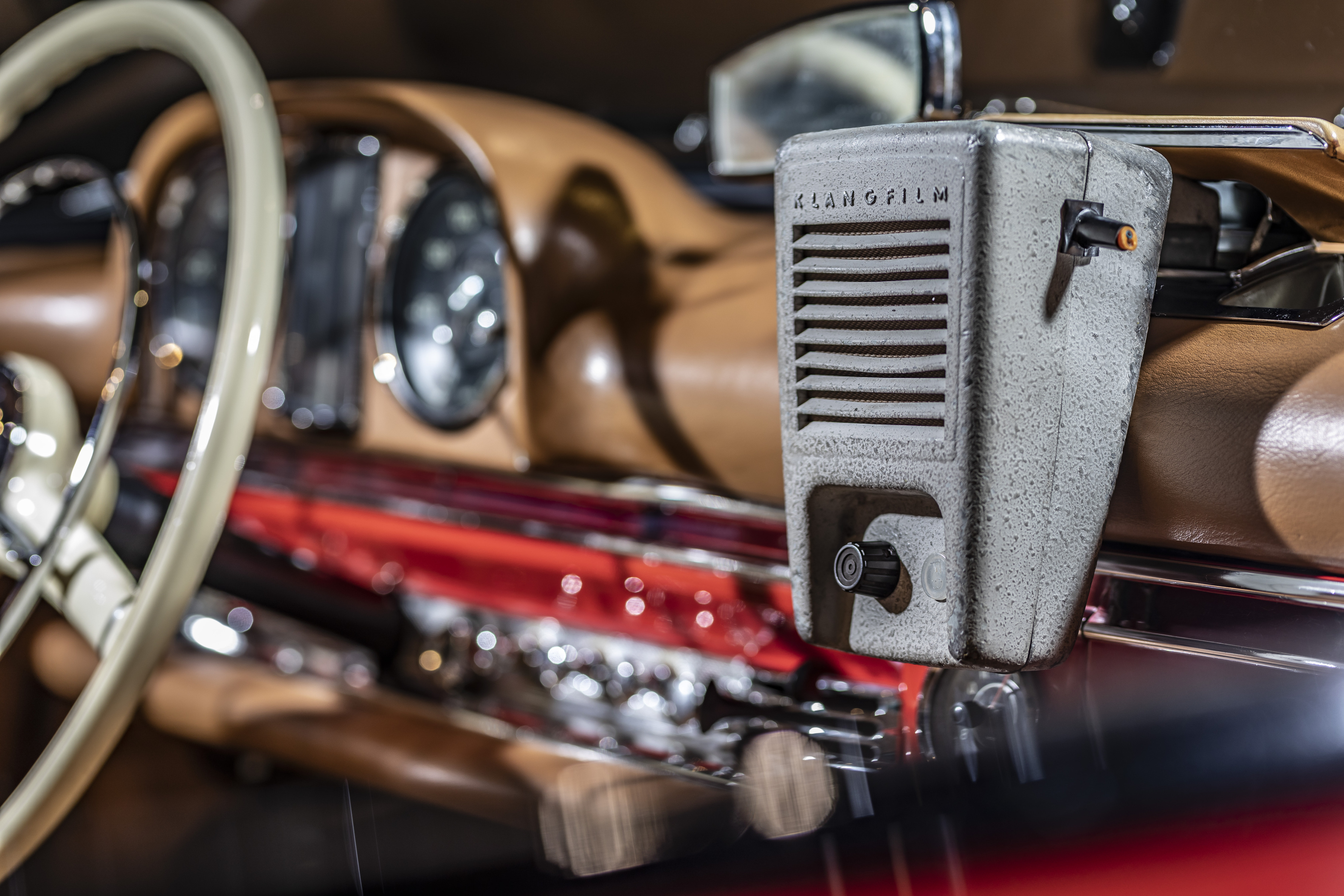Una volta le cose funzionavano diversamente. Per un ascolto individuale, attraverso il finestrino veniva fatto passare un altoparlante mono (con relativo cavo), che poteva poi essere appeso sul lato interno del cristallo o posizionato in un altro punto all’interno dell’abitacolo. L’altoparlante ‘Klangfilm’ è stato prodotto da una società affiliata di Siemens, fondata alla fine degli anni Venti e specializzata in tecnologia del suono per il cinema. Il ‘Klangfilm’ è integrato in un robusto alloggiamento in getto metallico. Il volume poteva essere regolato a piacere tramite una manopola.