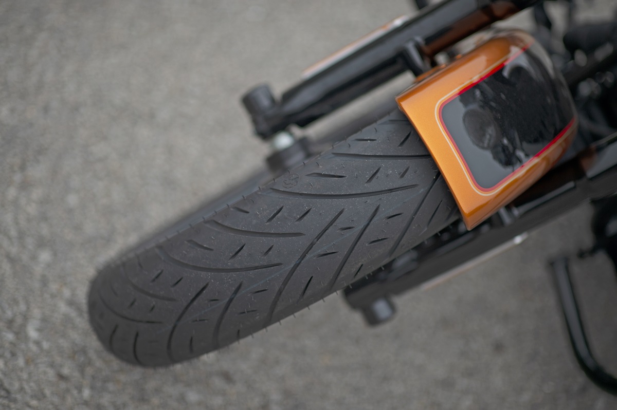 • Perfect ME77, pneumatico con battistrada dal gusto vintage sviluppato per promuovere le doti dinamiche delle customizzazioni in stile bobber e cut-down.