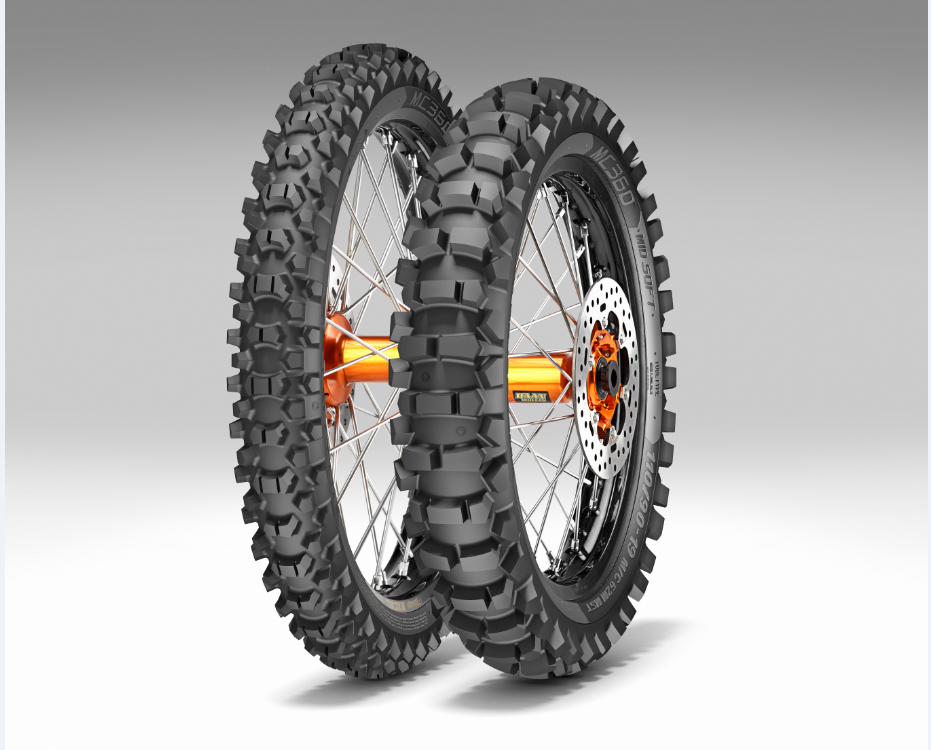 A partire da maggio 2021 le misure motocross saranno disponibili anche nella nuova specifica R per le applicazioni agonistiche su circuito. Con queste misure Metzeler introduce innovative mescole di fascia battistrada e di struttura, sviluppate per garantire prestazioni ai massimi livelli. Le specifiche R di MC360 saranno disponibili esclusivamente in versione NHS (Not for Highway Service) e su entrambi i battistrada Mid-Soft e Mid-Hard.