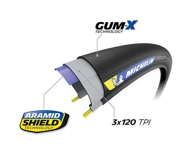 Il modello tubolare Power Cup include diverse tecnologie, tra cui la tecnologia Gum-X per ottimizzare l’efficienza di guida, l’aderenza in curva e la longevità degli pneumatici. La tecnologia High Density Shield offre degli alti livelli di resistenza alle forature. La carcassa del pneumatico con 2×160 TPI migliora il comfort ad alte pressioni di esercizio. Infine, la combinazione del pneumatico con una camera d’aria in lattice riduce il peso migliorando al contempo la protezione dalle forature, le prestazioni e il comfort.