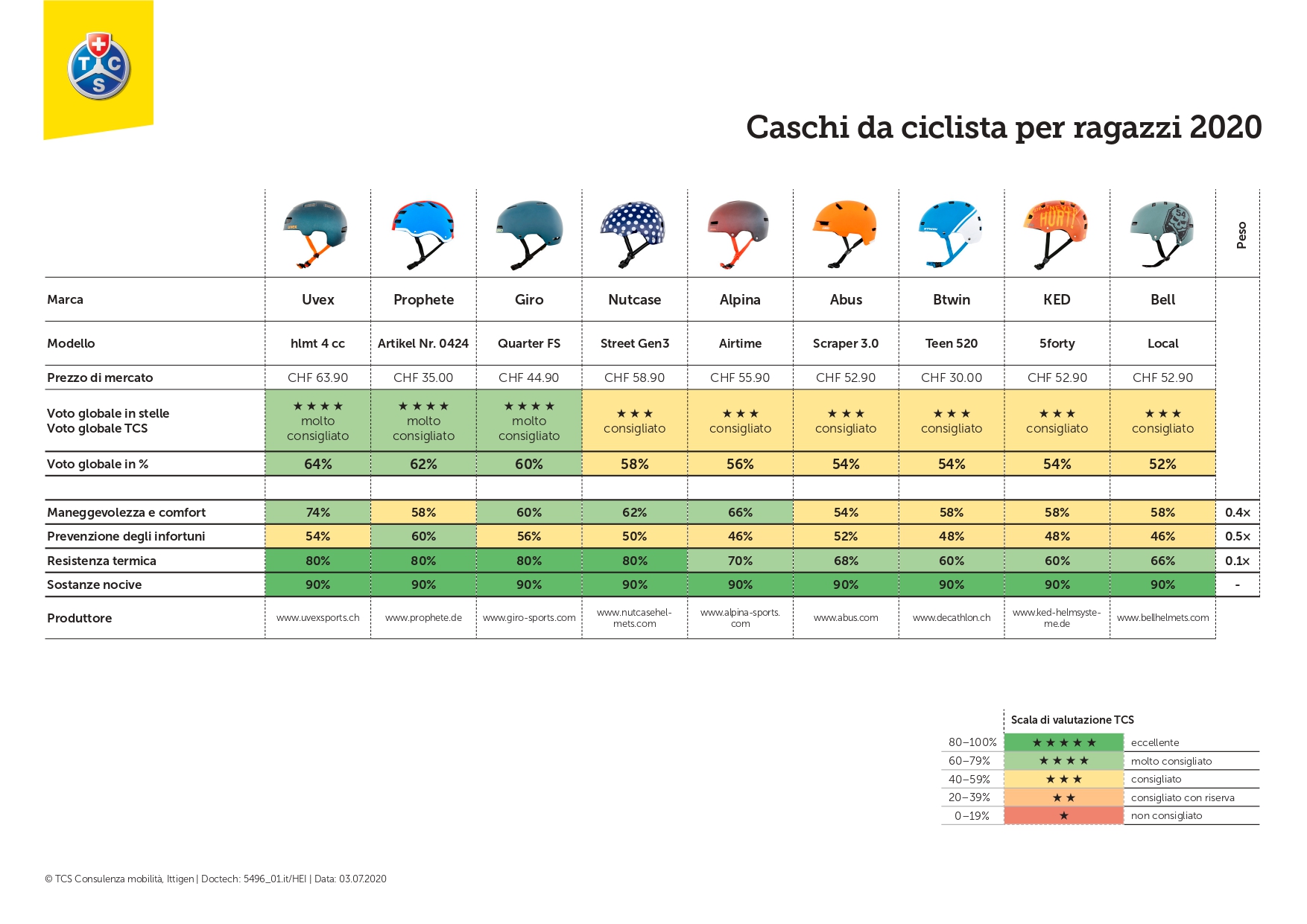 Per aiutare i ciclisti a scegliere un buon casco, numerosi consigli sono disponibili alla pagina seguente: https://www.tcs.ch/it/test-consigli/consigli/biciclette-bici-elettriche/casco-bici.php