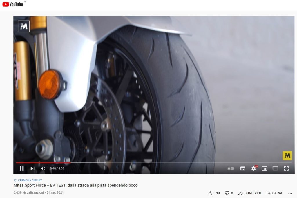 Moto.it ha testato questo pneumatico a San Martino del Lago in una giornata calda, sui 26 gradi, utilizzando una Suzuki GSX-R 1000. La cosa interessante è che moto.it, prima di montare le Mitas Sport Force + EV, ha testato le gomme di serie, delle Bridgestone Battlax S22, per avere un confronto diretto con un produttore premium. I tester sono partiti dalle pressioni consigliate da Suzuki, 2,7 – 2,9, per poi scendere fino ad arrivare a 1.7 posteriore e 2,1 anteriore, a freddo.