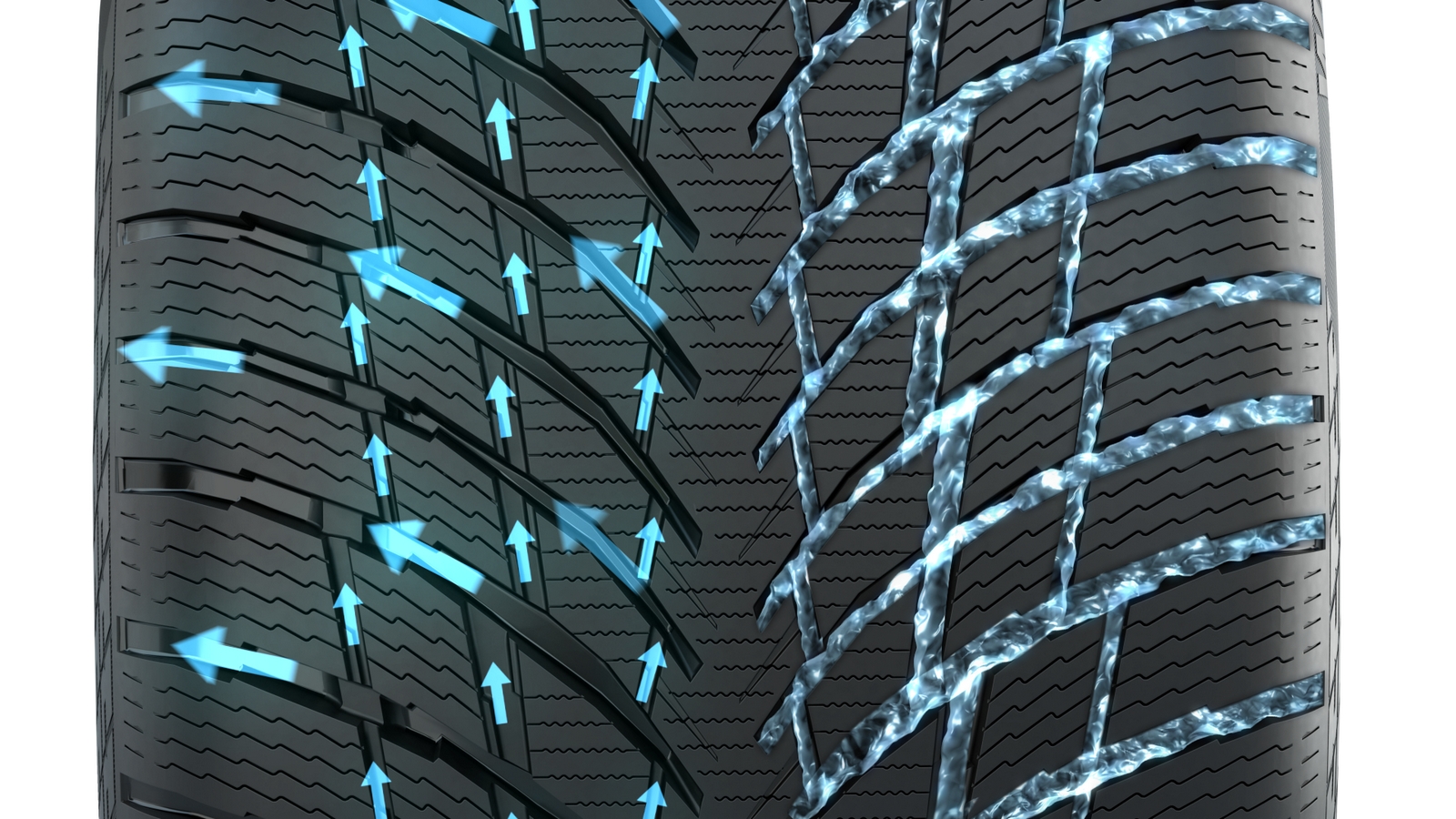 Gli artigli da neve (Snow Claws) di aderenza tra i blocchi del battistrada sulla spalla del pneumatico migliorano l’aderenza su neve e ghiaccio, specialmente quando si frena e si accelera. I Booster per frenata e accelerazione sui tasselli del battistrada fanno la loro parte per migliorare l’aderenza longitudinale.
