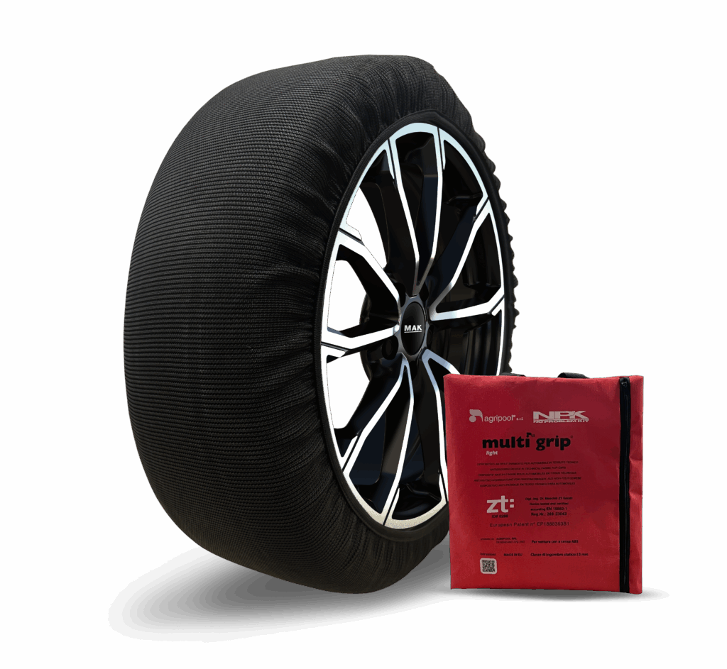 - Multigrip The Original: top di gamma, con funzionale banda laterale colorata presente su entrambe le spalle dello pneumatico in grado di consentire l’auto-centratura del dispositivo in fase di montaggio: una caratteristica che la rende un prodotto su misura previsto appositamente in numerose taglie ed applicazioni, l’elevata qualità e spessore della fattura tessile risulta evidente al primo tocco.
