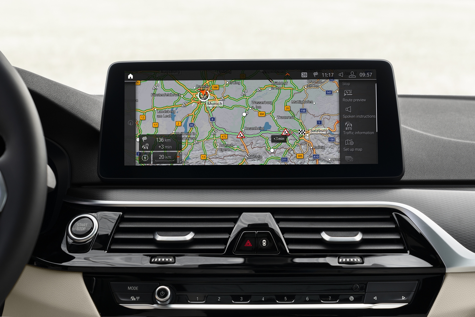 Nella nuova BMW Serie 5 restyling, sia il BMW Live Cockpit Plus standard che il BMW Live Cockpit Professional opzionale sono forniti del nuovo sistema operativo BMW 7, insieme a una serie di servizi digitali extra. Oltre a calcolare percorsi e tempi di arrivo con notevole velocità e precisione e ad aggiornare i dati del traffico in tempo reale a brevi intervalli, il nuovo sistema di navigazione basato su cloud BMW Maps consente ai conducenti di inserire qualsiasi parola durante la selezione di una destinazione. BMW Intelligent Personal Assistant con funzionalità estese è ora disponibile anche nella nuova BMW Serie 5 come allestimento standard. La funzione standard di integrazione smartphone è ora compatibile con sia Apple CarPlay che Android Auto. L’aggiornamento remoto del software è un’altra nuova funzionalità che consente di importare nel cloud le funzioni del veicolo e servizi digitali aggiuntivi.