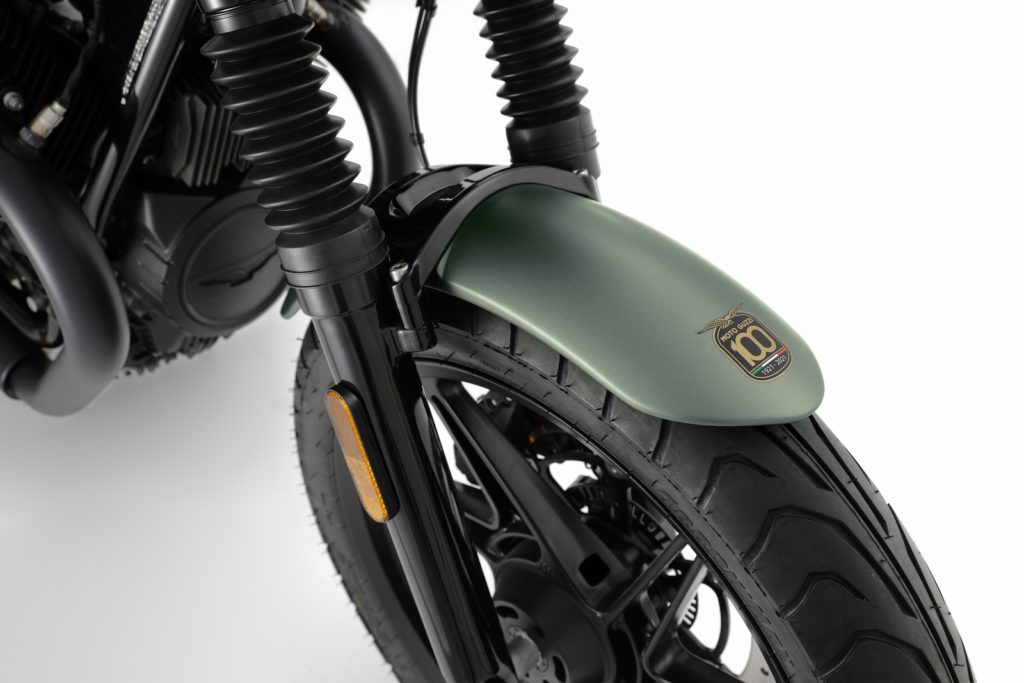 Oltre alla tinta Nero Ruvido, V7 Stone è disponibile in due nuove accattivanticolorazionisatinate, Azzurro Ghiaccio e Arancione Rame alle quali si aggiunge la speciale grafica Centenario, commemorativa dei primi cento anni di vita del marchio lariano, nato nel 1921. La nuova variante grafica è un tributo alla magnifica Otto Cilindri, una delle più sensazionali motociclette da corsa di tutti i tempi nata nel 1955 e ancora oggi esempio di capacità creativa e tecnica di Moto Guzzi. Si distingue per l’esclusiva livrea opaca, costituita dal serbatoio grigio e dalla sella marrone, abbinati a una magnifica tonalità di verde per fianchetti e parafango anteriore. A rendere unica questa tinta concorre, inoltre, la speciale colorazione oro dell’aquila sul serbatoio e del nome sui fianchetti laterali.