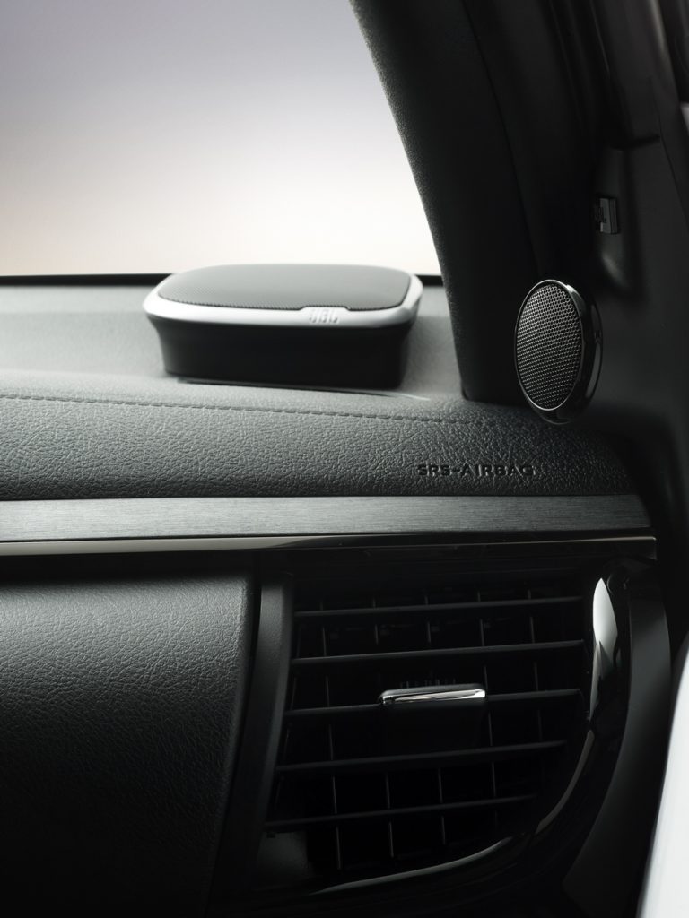 Un’ampia lista di equipaggiamenti comprende la smart entry e l’avvio con pulsante, la navigazione satellitare, il climatizzatore automatico, i sensori di parcheggio anteriori e posteriori e un sistema audio JBL Premium a 9 altoparlanti da 800W con un amplificatore a 8 canali e la tecnologia CLARi-Fi.
