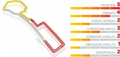 L’asfalto del tracciato cittadino di Baku è uno tra i meno aggressivi dell’anno in termini di rugosità e di carichi sui pneumatici: anche per questo motivo C3, C4 e C5 sono le mescole più adatte.