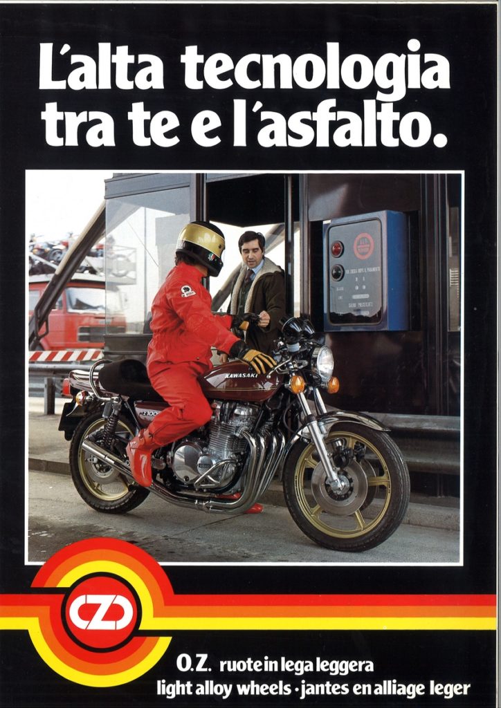 Non solo auto, ma anche moto. Nel 1972 OZ entrò nel mondo delle due ruote fondando successivamente una divisione dedicata a questo business: OZ Motorbike. Negli anni OZ ha collaborato con i principali produttori di moto tra cui Aprilia, Ducati, Norton e Bimota, equipaggiando i migliori team in tutte le categorie del motomondiale.