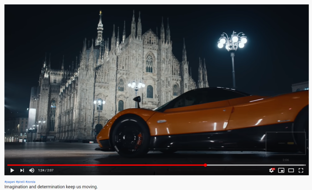 “L’immaginazione e la determinazione ci tengono in movimento. Sono i sognatori a muovere il mondo” si legge nella didascalia e così, nel video una bambina gioca con una Pagani Zonda giocattolo, gommata Pirelli P Zero, e quando va a dormire la piccola automobile prende vita e gira per la città. Anche i 12 cilindri della vettura hanno un suono ovattato, quasi fossero anche loro in quarantena, mentre l’arancio della carrozzeria porta un tocco di vivacità a un ambiente grigio.