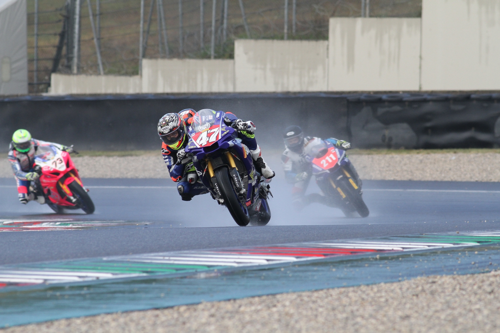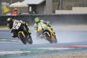 Fabrizio Lai, partito fortissimo, ha visto alle sue spalle un susseguirsi di colpi di scena dall’uscita di pista di Navand fino al prodigioso recupero del sempreverde Alessandro Traversaro che al settimo giro conquistava addirittura la testa della corsa, pur partendo dalla ottava casella in griglia. Sembrava una cavalcata vittoriosa quella del pilota ligure, ma una scivolata lasciava la via libera a Lai che alla bandiera a scacchi precedeva Luzzi Nicolas, wild card dell’Extreme Racing Team e il primo degli iscritti al campionato Michael Carbonera, su R6.