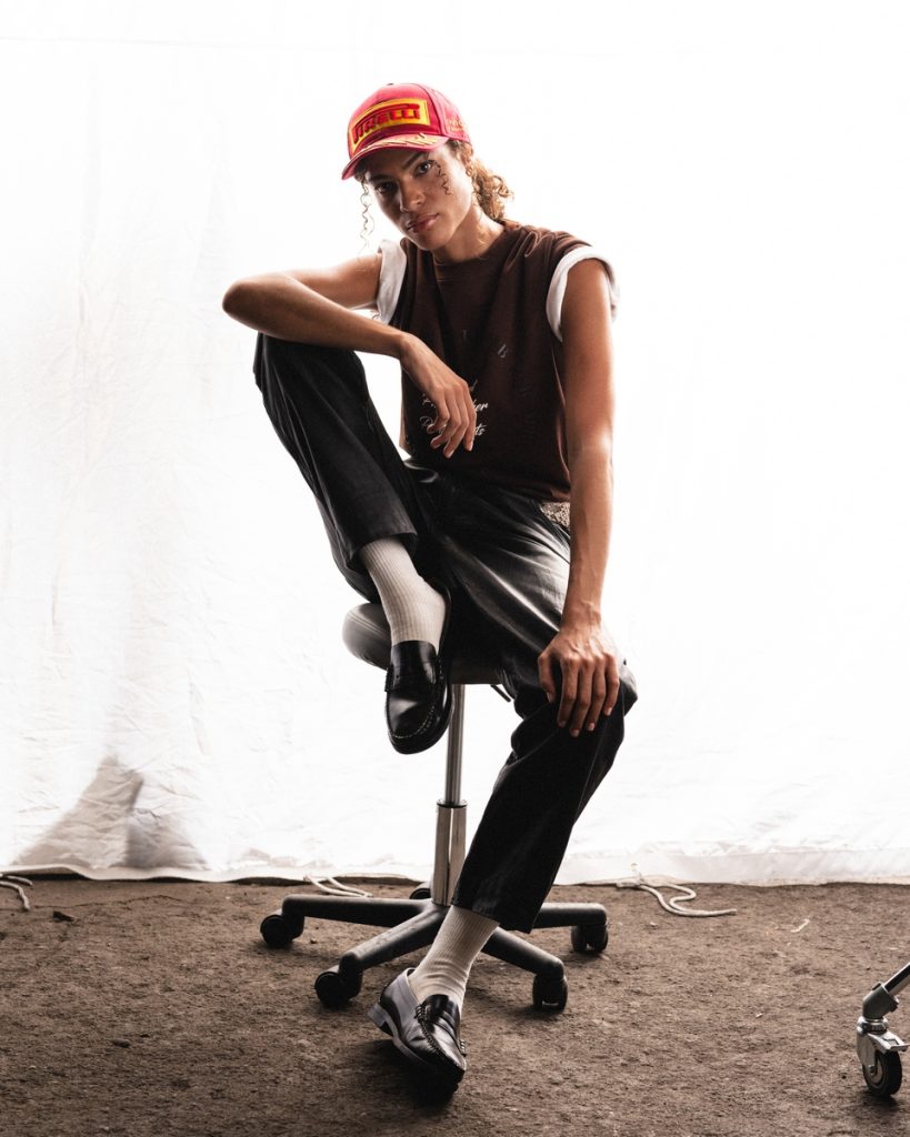 La collezione The Cal, presentata in toni terra e nero intenso, celebra il concetto di tempo come arte. I capi sono pezzi unici, destinati a durare, che reinterpretano il linguaggio visivo del Calendario attraverso tecniche raffinate: ricami, stampe gommate e dettagli intrecciati.