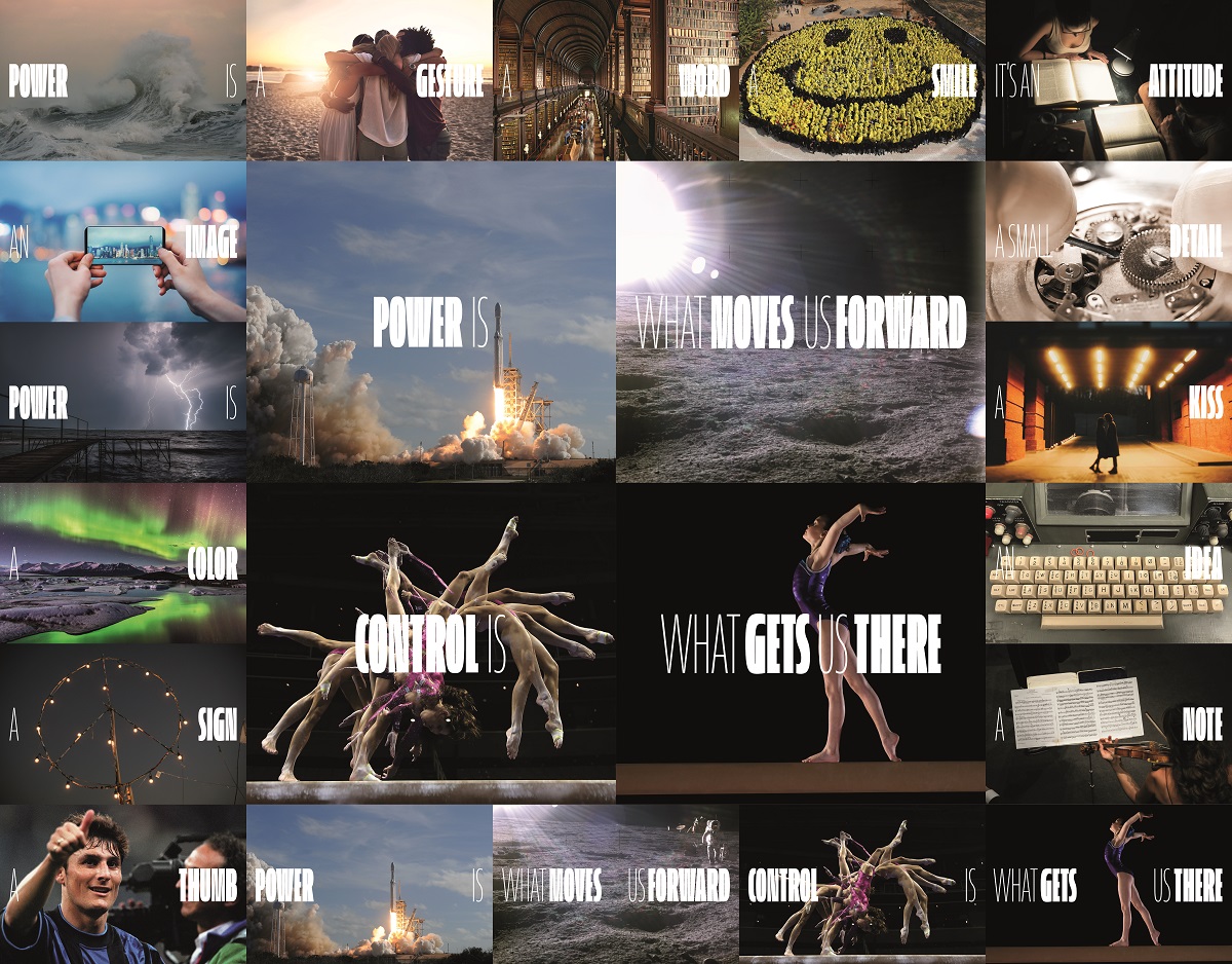 Gli scritti dei tre autori sono affiancati da un video realizzato da Young&Rubicam, la stessa agenzia che 25 anni fa ideò la campagna con Carl Lewis. Qui la potenza viene mostrata come la forza interiore che spinge l’uomo ad andare sempre oltre e il controllo come l’elemento indispensabile a raggiungere ogni meta. Lo stesso concetto del video viene declinato anche in una galleria fotografica che arricchisce l’edizione cartacea del bilancio.
