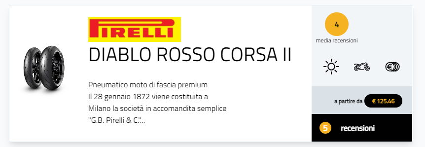 Avete provato i pneumatici Pirelli Diablo Rosso Corsa II? Postate le vostre recensioni cliccando qui sotto!