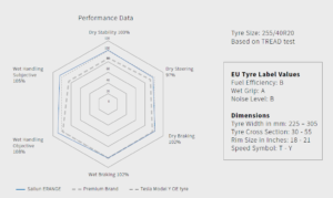 L’Atrezzo Erange era montato su due modelli di Tesla Model X, la versione standard e la Plaid da 1.000 cv. Secondo Sailun, la tecnologia di compounding Ecopoint3 permette a questo pneumatico, appositamente sviluppato per veicoli elettrici, di offrire elevata sicurezza, grazie a spazi di frenata brevi sia sul bagnato che sull’asciutto e ottima manovrabilità sul bagnato. Anche il disegno asimmetrico del battistrada contribuisce ad una migliore stabilità, con la parte interna del battistrada che evacua efficacemente l’acqua dal pneumatico e la parte esterna che è specializzata nel migliorare l’aderenza e la manovrabilità. Infine, le lamelle sui tasselli della spalla migliorano l’aderenza per curve e frenate precise.
