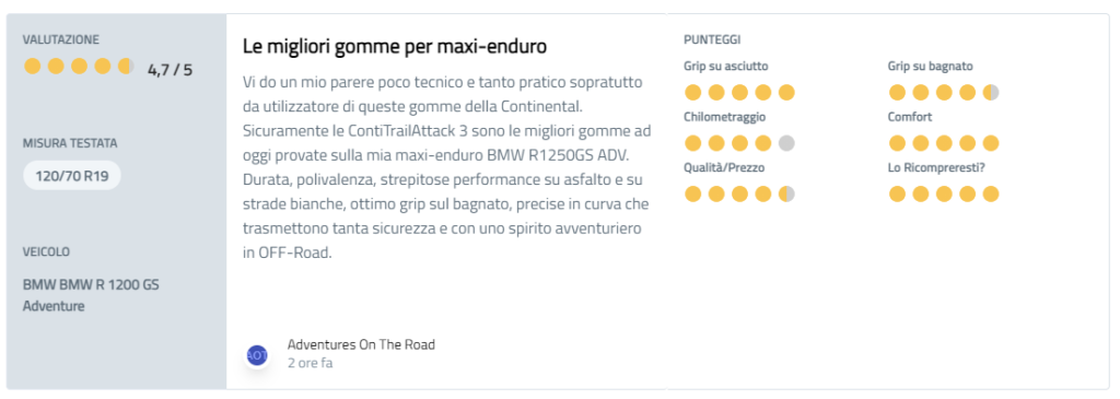 “Vi do un mio parere poco tecnico e tanto pratico, soprattutto da utilizzatore di queste gomme della Continental. Sicuramente le ContiTrailAttack 3 sono le migliori gomme ad oggi provate sulla mia maxi-enduro BMW R1250GS ADV. Durata, polivalenza, strepitose performance su asfalto e su strade bianche, ottimo grip sul bagnato, precise in curva che trasmettono tanta sicurezza e con uno spirito avventuriero in OFF-Road.“