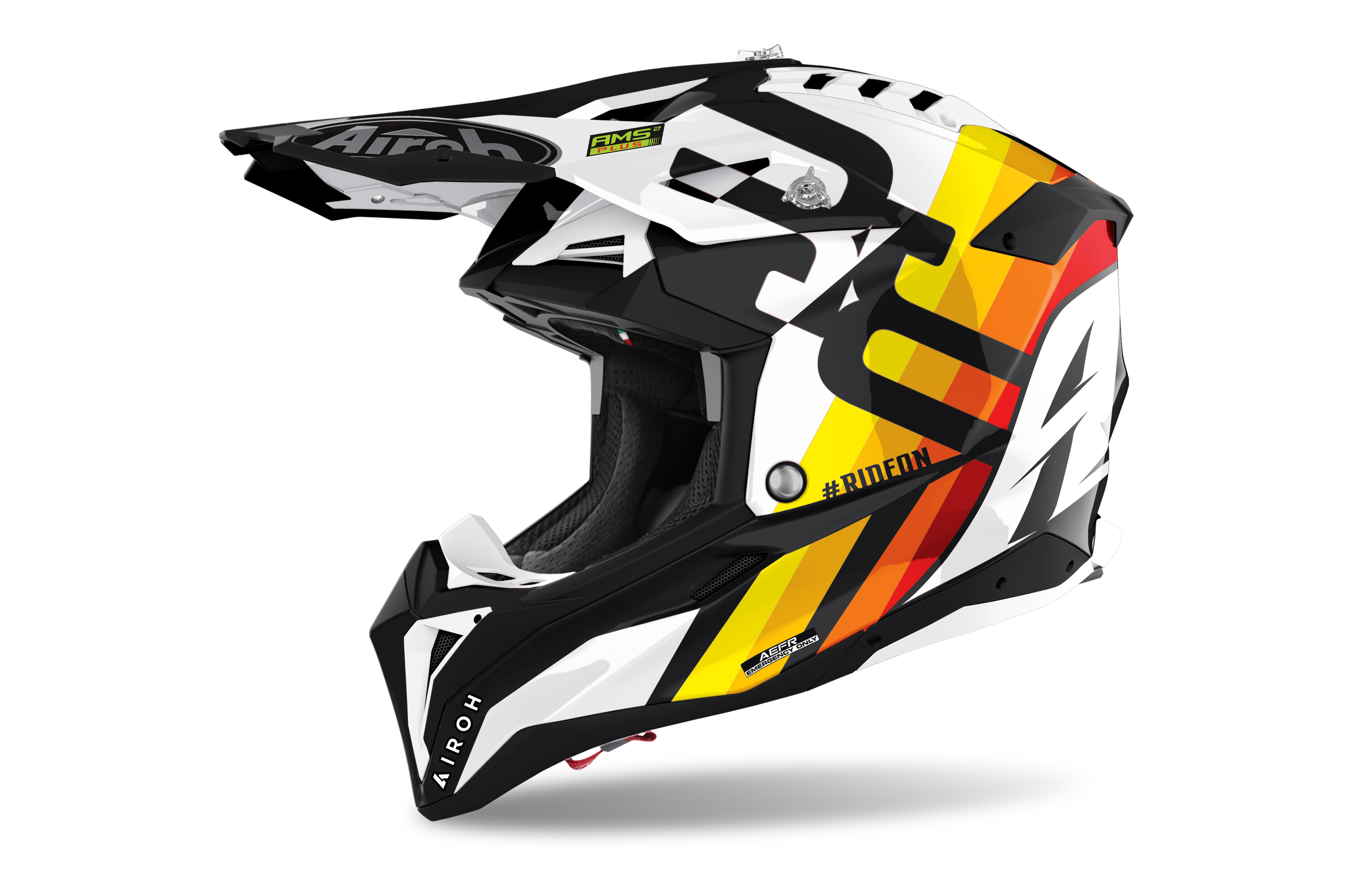 Se la nuova grafica activewear dello Spark Scale Matt, con venature in grigio medio e freddo, rinnova le tinte di un modello che sposa comfort e versatilità, uso urbano e intensivo, un caldo arcobaleno illumina Aviator 3 Rainbow White Gloss, il casco più amato dai riders di tutto il mondo, indossato anche dal pluricampione mondiale di motocross Tony Cairoli e summa tecnologica del mondo Airoh.