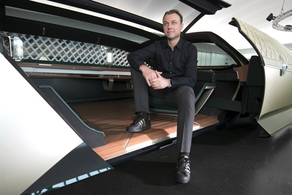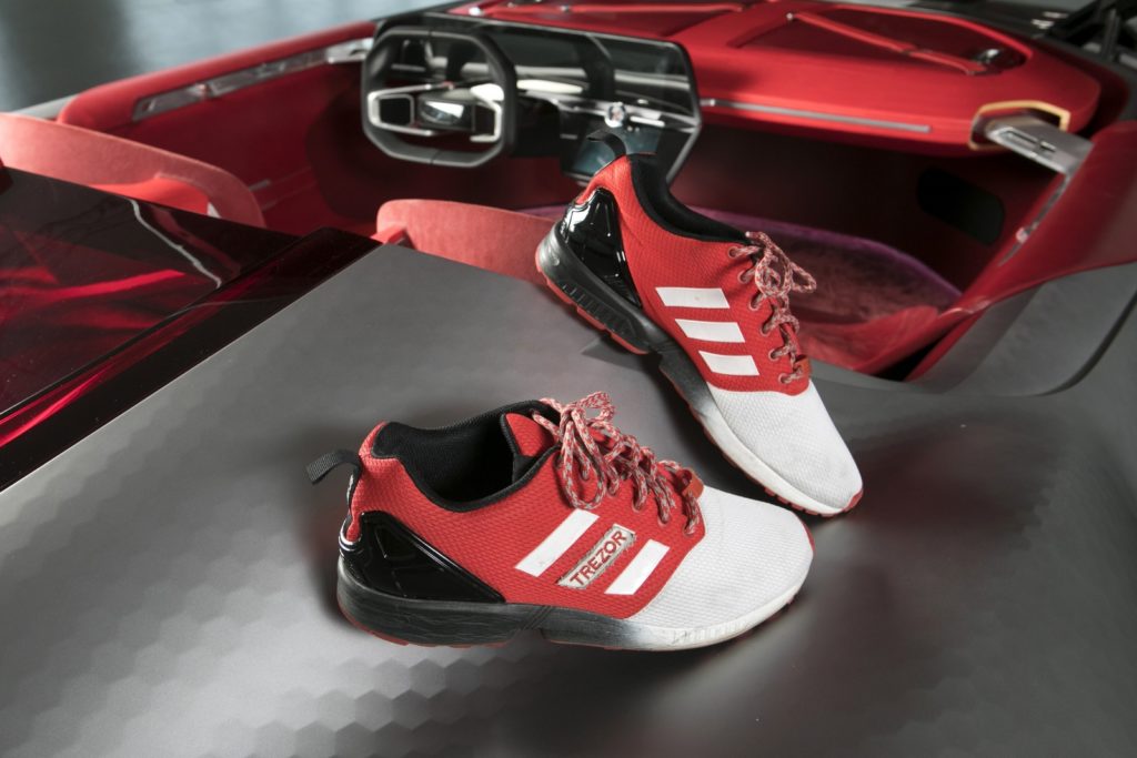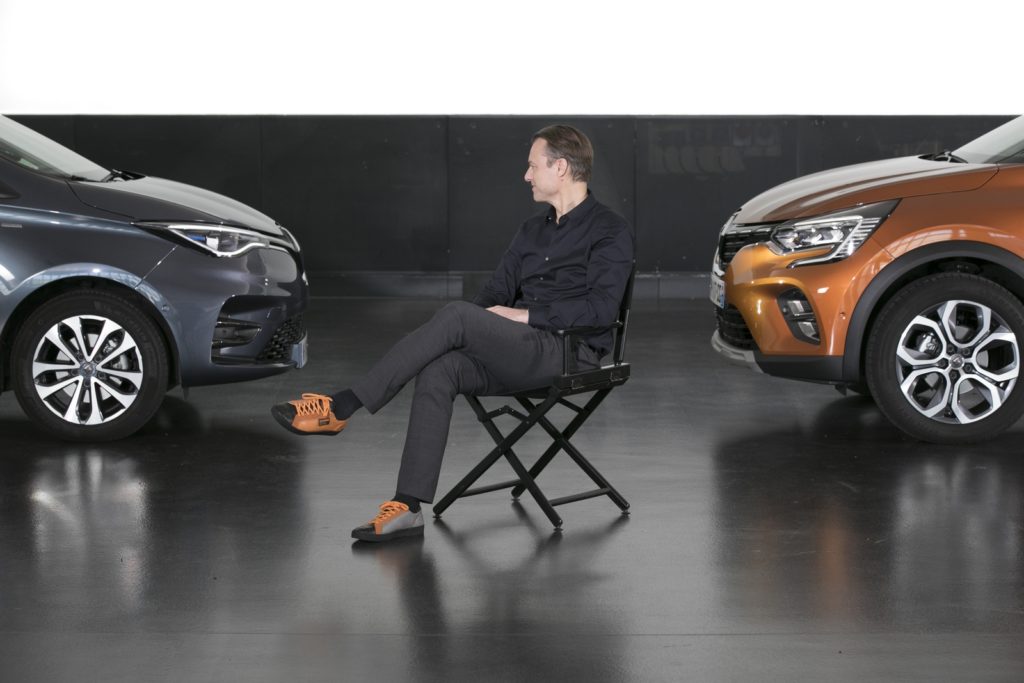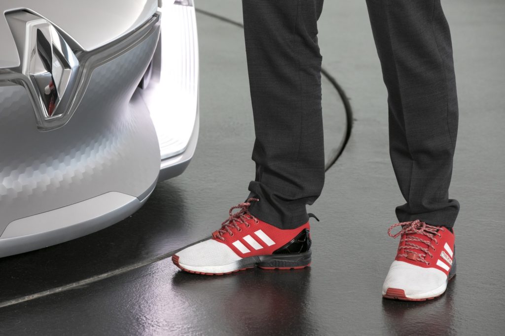 Laurens, in piedi accanto alla sua concept car, appare ben piantato a terra nelle sue Adidas nere, rosse e bianche, un modello personalizzato che fa riferimento ai colori dell’auto. Un modo per stabilire un legame tra l’uomo e la sua macchina. Da quel momento, ogni singola concept car, ogni nuovo modello di serie sarà accompagnato da un bel paio di sneaker. Una strizzatina d’occhio che alimenta le attese degli appassionati, un tocco di creatività in più destinato a diventare il tormentone del Direttore del Design del Gruppo Renault.