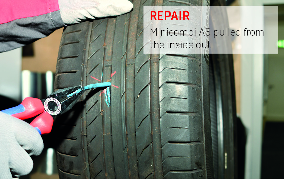 Un caso tipico che si verifica quasi quotidianamente nelle officine di riparazione: una vite o altro oggetto appuntito penetra un pneumatico – una tipica foratura del battistrada. Il danno è riparabile perché la sua dimensione è al massimo di 6 millimetri di diametro.