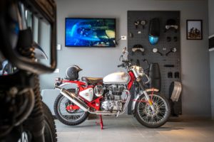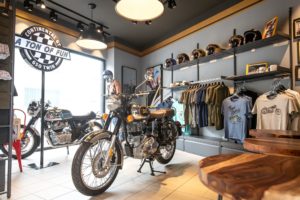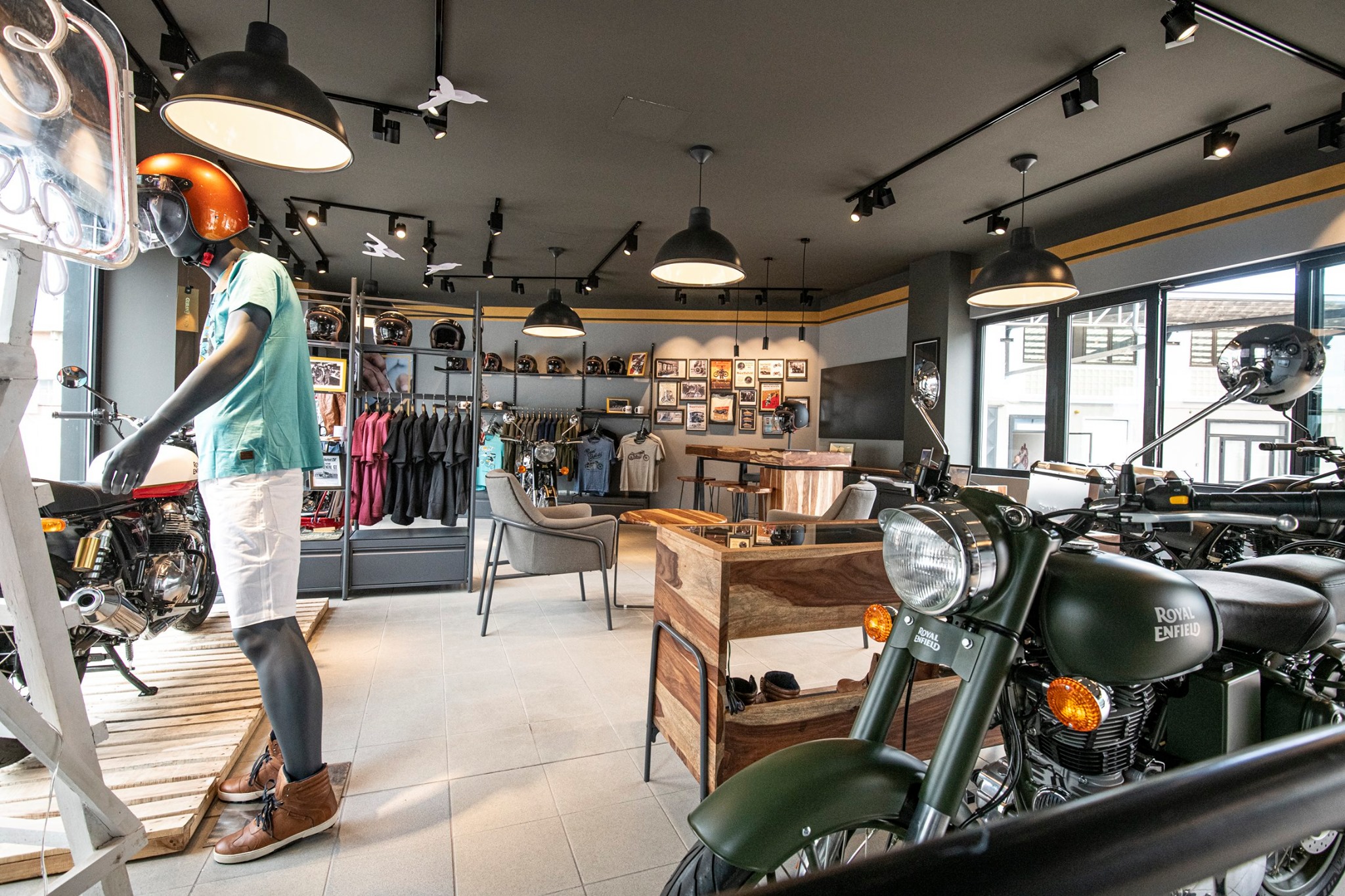 Concepito per incarnare sotto ogni aspetto la filosofia di motociclismo autentico di Royal Enfield, lo spazio di 71 mq del Concept Store si presenta come il salotto di un entusiasta delle due ruote grazie a un interessante format di visual merchandising e a display di prodotto innovativi che includono l’uso di componenti e accessori provenienti da moto Royal Enfield come complementi d’arredo, oltre a immagini storiche del marchio e dei prodotti.