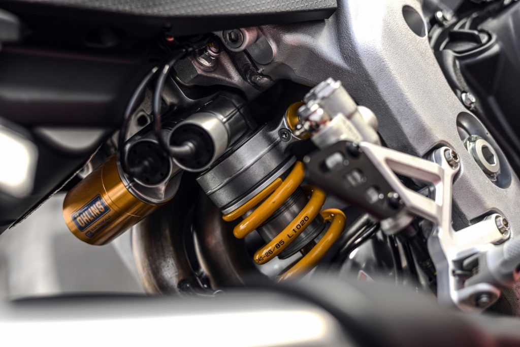 La centralina che governa le sospensioni Öhlins Smart EC 2.0 ha accesso a tutti i sistemi elettronici presenti sulla moto ed è quindi in grado di riconoscere tutte le fasi della guida, adattando di conseguenza la taratura dell’idraulica di forcella, ammortizzatore e ammortizzatore di sterzo, grazie alla messa a punto di un algoritmo che è frutto della collaborazione tra Öhlins e Aprilia. Di conseguenza queste sospensioni supportano meglio il pilota in ogni fase di guida in circuito, restituendo anche un maggior feeling con la ruota anteriore, caratteristica già elevatissima su tutti i precedenti modelli di RSV4 my2021.