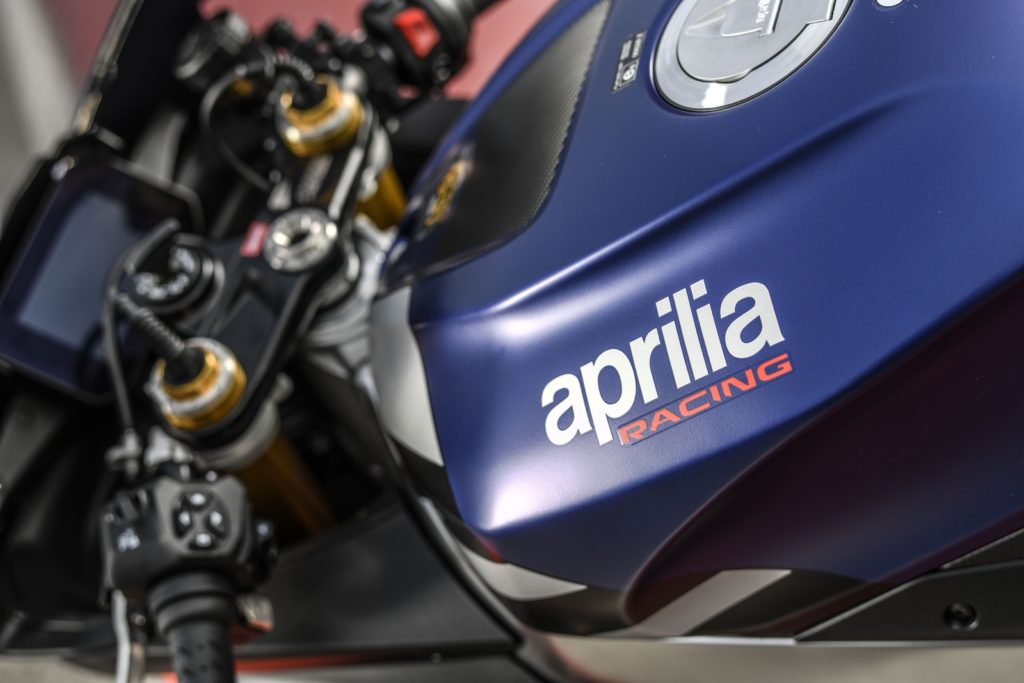 - Scarico slip-on: Akrapovic by Aprilia Racing, è dotato di silenziatore in titanio ed è omologato per uso stradale. Disponibile anche la versione slip-on in carbonio, per esclusivo uso in pista. Include la mappatura motore dedicata sviluppata da Aprilia Racing.