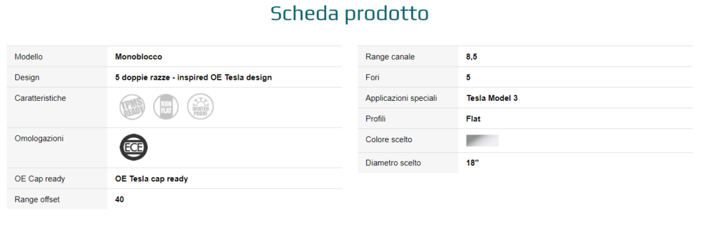 E’ omologata ECE ed è OE Tesla Cap Ready, ovvero permette l’utilizzo del coprimozzo originale Tesla.