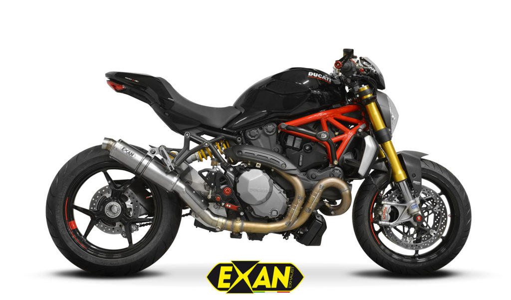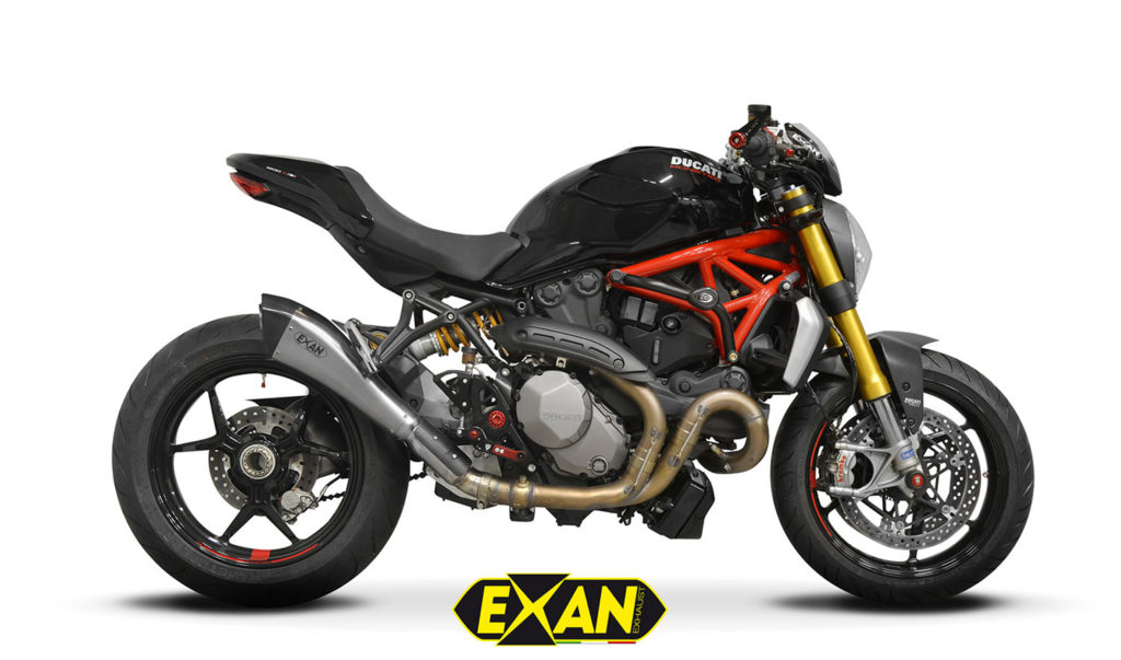 L’anima della bellissima Ducati Monster 1200 si esalta ulteriormente con le diverse linee di scarichi dedicatele da EXAN (tutti omologati EURO 4) che ne ridisegnano la parte posteriore cambiandone, ognuno a suo modo, l’erogazione, le caratteristiche estetiche e il sound.