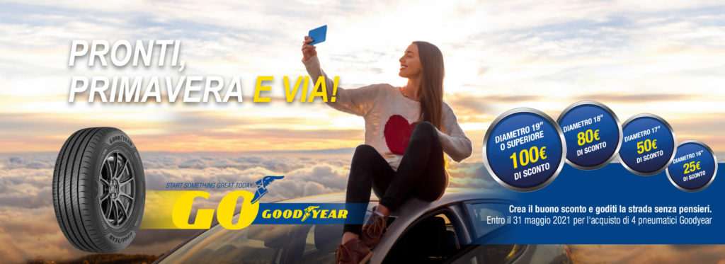 La campagna “Pronti, primavera e via” di Goodyear è valida fino al 31 maggio e permetterà di acquistare presso i membri della rete SuperService e negli altri rivenditori partner pneumatici estivi e all season a marchio Goodyear e Dunlop con uno sconto fino a 100 euro (a seconda della misura dei pneumatici scelti) a fronte dell’acquisto di un set di 4 pneumatici.