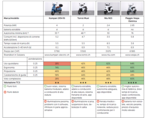 Gli scooter elettrici sottoposti a test (Vespa Elettrica, Niu N1S, Torrot Muvi e Kumpan 1954 Ri) sono stati esaminati dal TCS in collaborazione con l’ADAC. Essi rientrano nella categoria A1 e raggiungono una velocità massima di 45 km/h. Con la modifica della legge, dal 2021 l’età, per condurre questi scooter, scende a 15 anni e quindi entreranno a far parte della categoria AM. Il test ha analizzato il profilo dell’idoneità all’uso quotidiano, l’ergonomia, la propulsione e il comportamento stradale. Sono emerse differenze non solo di prezzo, ma in modo significativo anche sull’illuminazione, sulla durata di ricarica, sulla batteria e sull’autonomia.