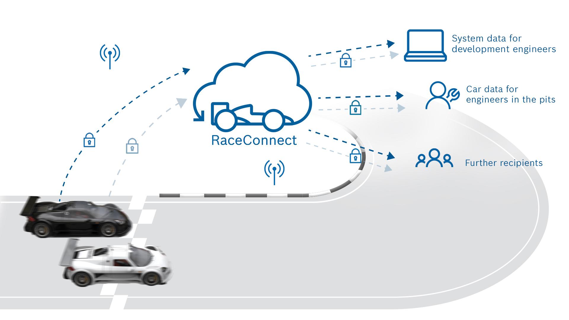 “Con RaceConnect, Bosch Motorsport ha sviluppato un sistema completo di telemetria che fornisce ai team in gara una soluzione di trasmissione, archiviazione ed elaborazione in tempo reale idipendentemente da una specifica posizione” ha dichiarato Timo Blon, Direttore di Portfolio Strategy and Systems Engineering di Bosch Motorsport.