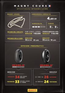 Per il round francese Pirelli porta in pista un totale di 4047 pneumatici che comprende sia soluzioni da asciutto slick (per la classe WorldSBK) e intagliate (per le classi WorldSSP e WorldSSP300) che soluzioni da bagnato per tutte le classi.