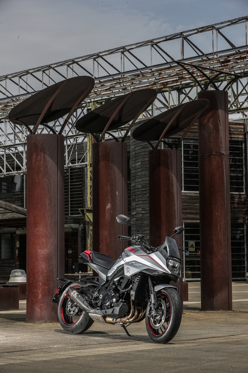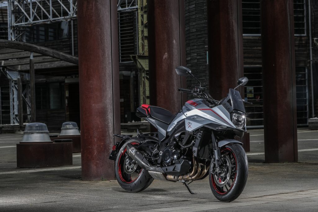 - scarico in titanio appositamente realizzato per la Katana dallo specialista Akrapovic, che dà un tocco più sportivo alla linea, consente un sensibile risparmio di peso e regala un sound più pieno al motore;