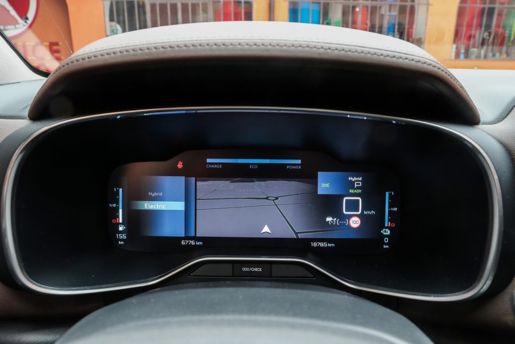La funzionale strumentazione digitale dedica uno spazio importante al funzionamento del motore ibrido, indicando i flussi di energia, l’autonomia residua e, quando l’auto è in carica, anche il tempo di ricarica rimanente. Lo schermo touch da otto pollici al centro della plancia integra il sistema Citroen Connect, compatibile con Apple Car Play e Android Auto; il Connect Nav prevede inoltre funzioni esclusive dedicate ai veicoli elettrificati, mostrando le colonnine di ricarica direttamente sulla mappa del percorso che viene impostato.