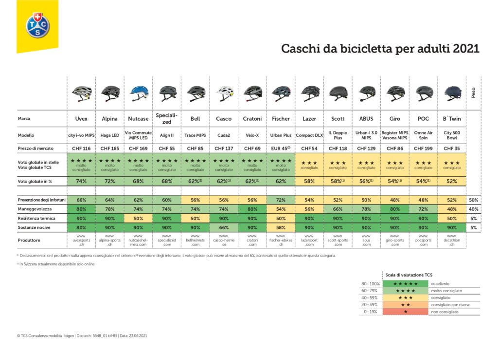 Nel test sui caschi da bici 2021, il TCS ha esaminato 14 tra i caschi per ciclisti più venduti, nonché un casco con airbag. Nella valutazione complessiva, tutti i caschi hanno ottenuto almeno la menzione “consigliato”. Le uniche critiche concernono la visibilità dei caschi, talvolta insufficiente, e anomalie nella resistenza al calore.