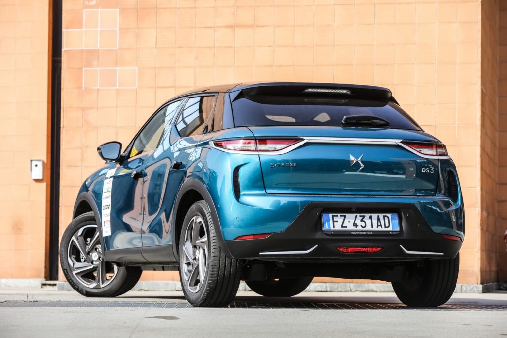 Le scelte stilistiche, che così tanto caratterizzano la casa francese, rimangono invariate: osservando la Ds3 Crossback E-Tense si scoprono la solita accattivante firma luminosa, le ridondanti forme romboidali, la “pinna di squalo” sulla carrozzeria tra finestrino anteriore e posteriore. Rispetto alla versione termica manca ovviamente il terminale di scarico, mentre lo sportellino sul lato sinistro serve per la ricarica della batteria.