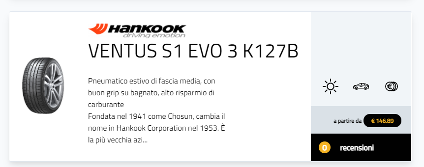 Avete provato i pneumatici Hankook Ventus S1 Evo 3? Postate la vostra recensione: