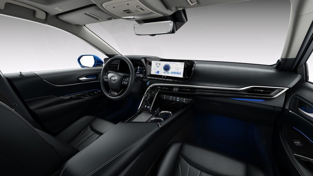 Anche il packaging è stato notevolmente migliorato, con la nuova Mirai costruita sulla piattaforma modulare GA-L di Toyota. Una disposizione più efficiente ed equilibrata del nuovo propulsore FCEV – in particolare con la pila di celle a combustibile spostata da sotto l’abitacolo al vano anteriore – ha permesso di ottenere un interno più spazioso, a cinque posti, con uno spazio per le gambe migliorato per i passeggeri dei sedili posteriori.