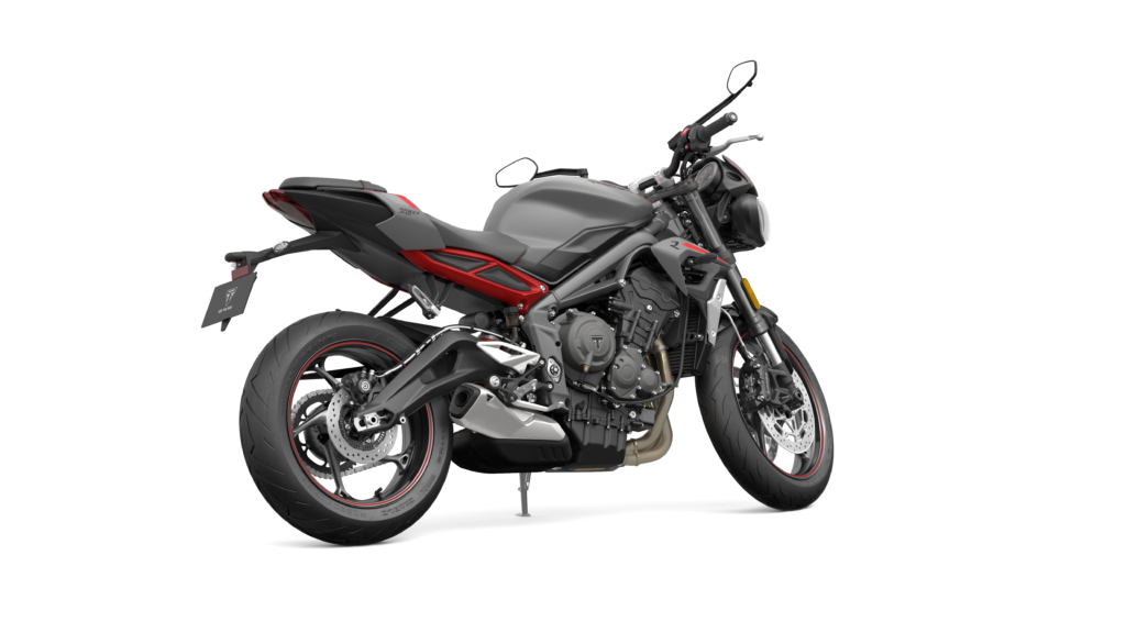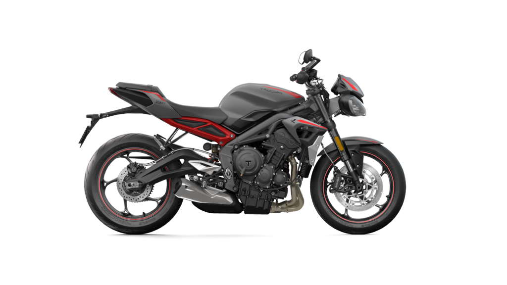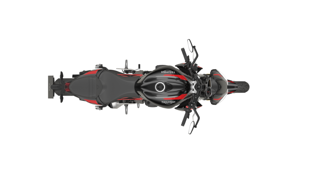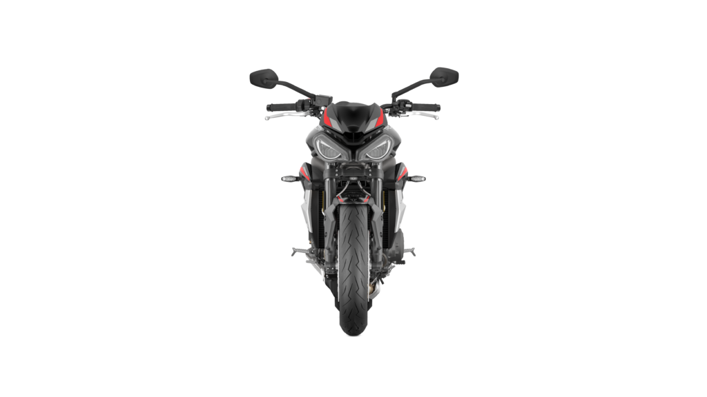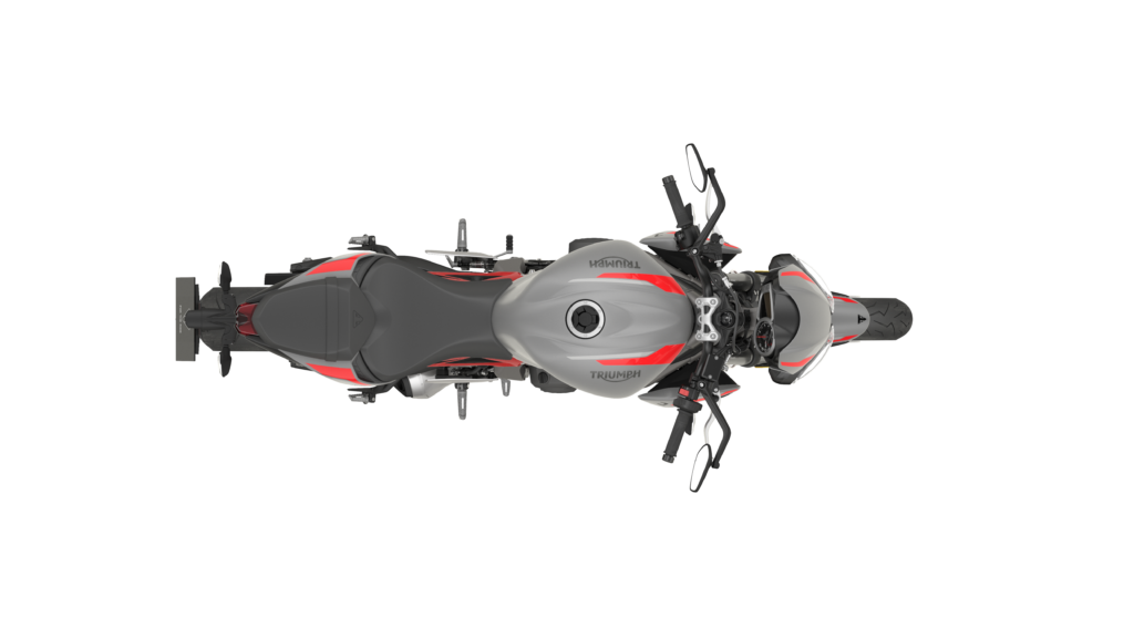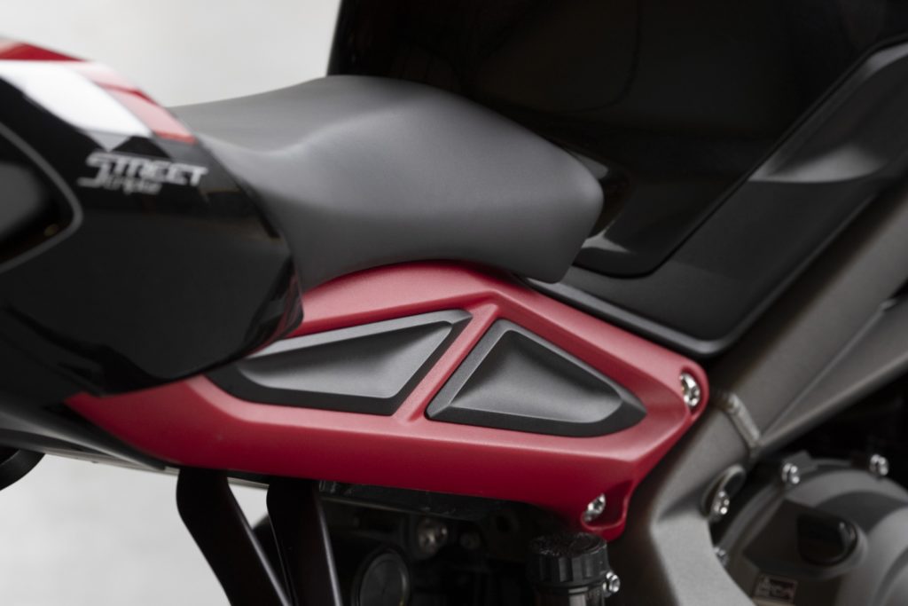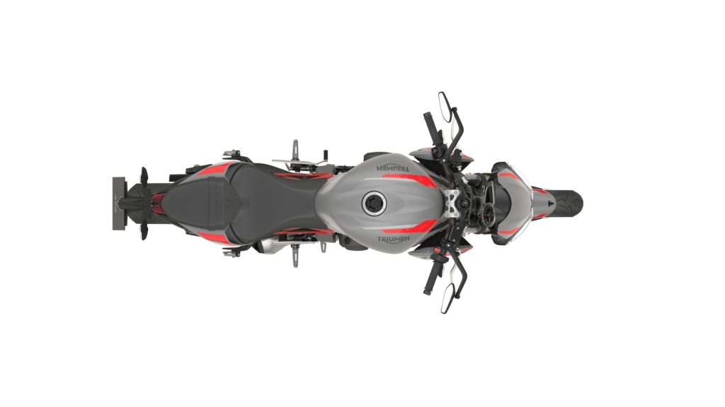 E arrivano anche due nuove colorazioni: Sapphire Black oppure Matt Silver Ice. Entrambe le livree sfoggiano grafiche in Diablo Red e Aluminium Silver, design stripes rosse realizzate a mano lungo i cerchi e telaietto posteriore nel dinamico Street Triple R Red.