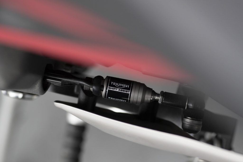 Accogliendo le richieste di tanti appassionati, sulla Street Triple R 2020 il Triumph Shift Assist up & down quickshifter diventa standard, a tutto vantaggio del divertimento su strada: senza chiudere il gas e senza azionale la leva della frizione, il Triumph Shift Assist consente cambi marcia in salita e scalata rapidi e comfortevoli.